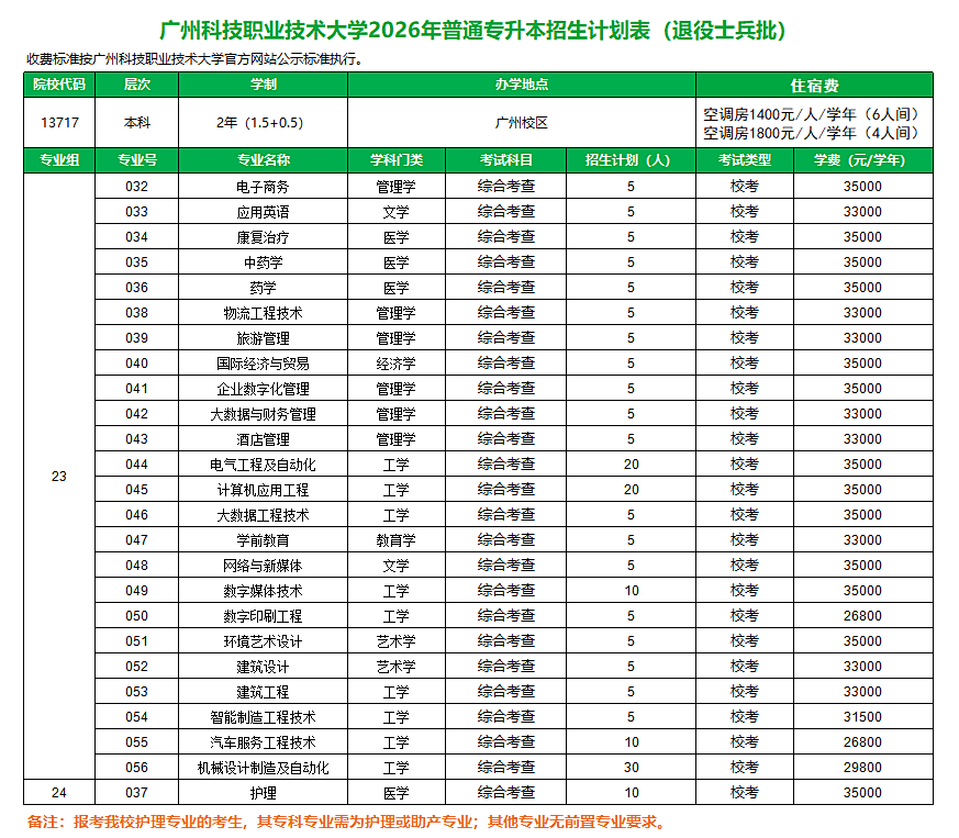 2026年开设25个普通专升本招生专业,均在广州校区上课。