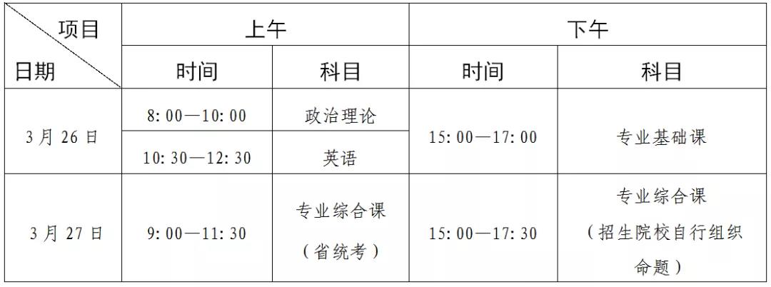 外国语言文学类中非英语类专业的专业课,以及个别艺术类专业和需要面试或实操考试等特殊专业的专业综合课,由招生院校自行组织,考试时间由院校在省招生办规定的时间范围内自行决定并通知考生。